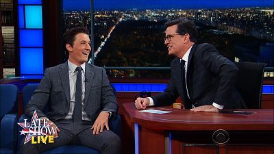 Stephen welcomes Miles Teller, Neil deGrasse Tyson, and Triumph, the Insult Comic Dog.
