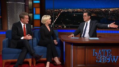 Stephen welcomes TV hosts Joe Scarborough with musical guests Mika Brzezinski, actress Laura Benanti, and The Revivalists.