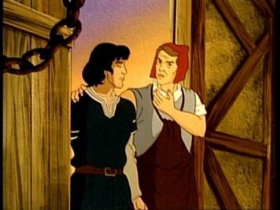 The two would-be knights run afoul of Sheriff Robert when they stop him from abducting Rowanne (the blacksmith's daughter). Their stay at her home that evening reveals that she is far from a typical maiden in distress: the young woman has spirit and a deadly aim with a bow and arrow. The visit takes a near fatal turn when Robert comes to exact revenge for his humiliating defeat. Valiant and Arn also have to contend with Robert's powerful brother Duncan when word of their quest reaches him.
