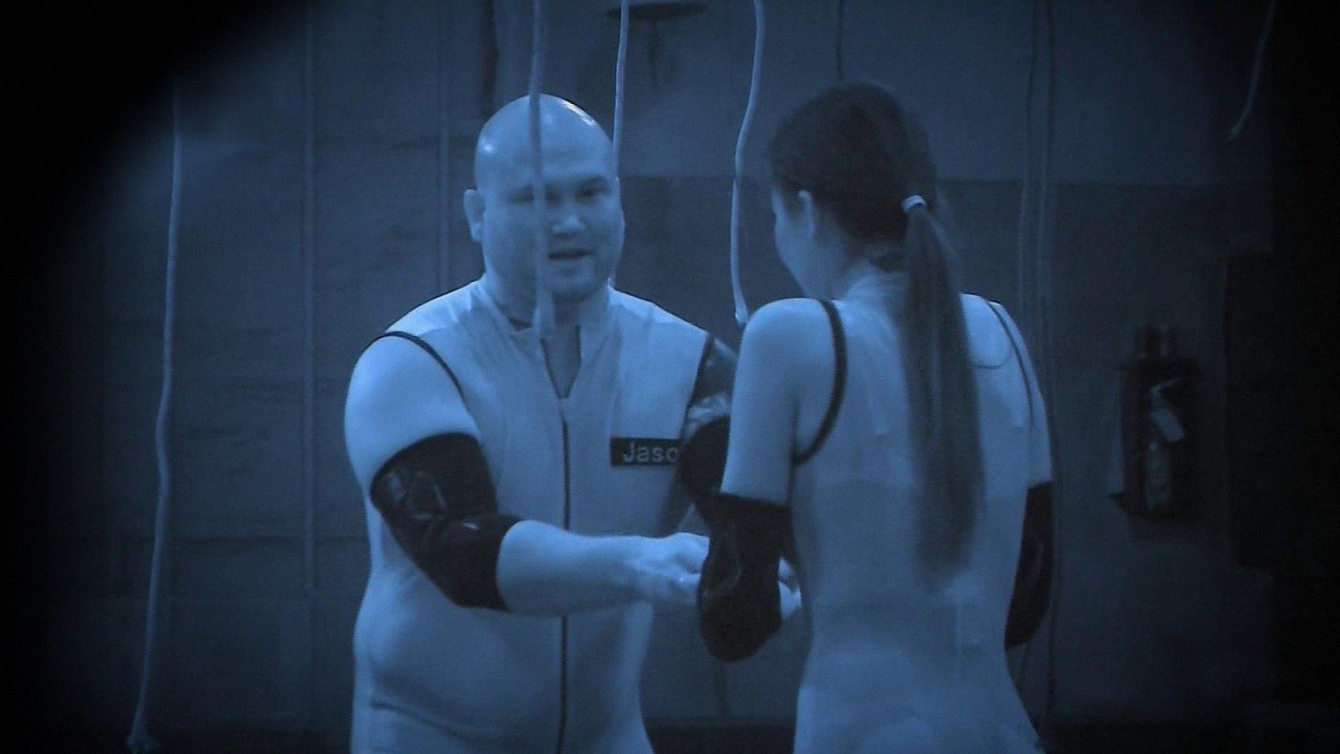 Tub of TerrorContestants wear straitjackets for the first challenge, which forces them to use their tongues to identify objects. Later, they try to guess the weight of a dangerous animal; and have to figure out what's being dumped on them as they sit in a tub filled with water.