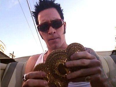 E16Hard Val's NightIn Orange Country to look for a heavenly Acres timeshare place, VIP bumps into Lit-lead singer AJay Popoff in his boxers, pursued by the souvenir hunters who took his pants, so the rock band hires them. AJ also assigns Val to recover his lucky charm, an Elvis type 'Cat Eye' belt buckle. They succeed at Stiles souvenir shop, but get pursued for it by Thelonius Brock's goons, although X-rays prove it's paste, not the real precious jewels. - Val's On First